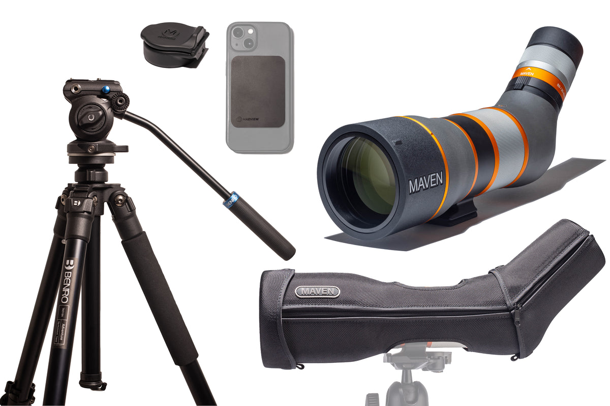 1. Pick your color / eyepiece, 2. Pick a tripod, 3. Pick a digiscoping kit, 4. Add a scope case.